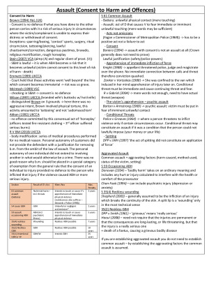 These notes are based off the course textbook (Criminal Laws - Materials & Commentary 6th ed by Brown, Ferrier, McNamara, Grewcock & Schwartz) as well as notes made by Helen in class. These are perfect to use in an exam and saved me heaps of time searching through the textbook, and were perfect for revision. They include all course content, including: - Assault (Consent to Harm and Offences) - Homicide (Murder and Causation) - Homicide (Manslaughter and Defences) - Larceny - NSW Drug Laws - Definitions and Relevant legislation also included