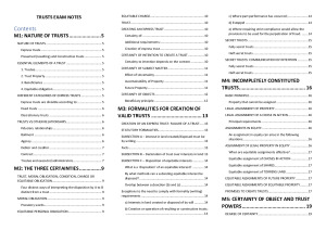 Extensive, 41 page notes for exams. These notes are designed to reduce page flipping during exams. Diagrams provide key law for students to follow along when structuring answers. Includes law-supported notes for all modules such as: - Nature of trusts - Three certainties - Formalities for creation of valid trusts - Incompletely constituted trusts - Certainty of object and trust powers - Charitable trusts - Duties of trustees - Liabilities, defences and rights of trustees - Rights and remedies of beneficiaries - Resulting and constructive trusts Includes a multitude of detailed and easily understandable case summaries of important and illustrative cases for each module.