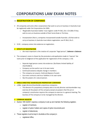 Registration of Companies Effects of registration corporate veil directors duties internal rules management of the company pre/post incorporation liabilities corporate liability criminal and civil penalties the business judgement rule duty to prevent insolvent trading duties of directors and other officers good faith and proper purpose meetings and members members/shareholders members rights and remedies fraud on the minority share capital fiduciary duties external administration winding up voidable transactions