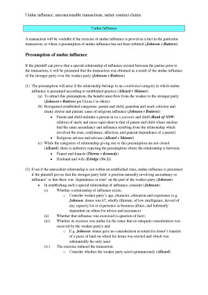 I relied on these notes to receive a mark of 86 overall in TCII in Semester 2, 2019. The sample notes include the first page from a few scaffolds. Topics covered in the notes: - Rescission - Undue influence; unconscionable transactions; unfair contract claims - Mistake - Misrepresentation at common law; misleading and deceptive conduct under the ACL - Trespass to land - Private nuisance - Tortious interference with goods - Pure economic loss - Proportionate liability