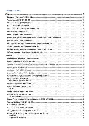 This document includes the summary of over 80 negligence cases, as well as a two page summary of how to answer negligence questions.