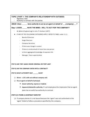 I have provided checklists for the exam to help with problem solving questions. It includes all core topics but also smaller topics within them eg. share capital reduction and transfer of shares. These checklist follow the IRAC style and include authorities. This was the main document I used in the exam! I also have detailed notes available on Student VIP that complement these checklists. They provide a detailed summary of the course. TOPICS INCLUDED: - TOPIC 2: CONSTITUTION & REPLACEABLE RULES - TOPIC 3 PART 1: THE COMPANY'S RELATIONSHIP WITH OUTSIDES - TOPIC 3 PART 2: PROMOTERS - TOPIC 3 PART : PRE-REGISTRATION CONTRACTS - TOPIC 3 PART 3: FUNDRAISING - TOPIC 4 PART 1: SHARE CAPITAL - TOPIC 4 PART 1: MAINTENANCE OF SHARE CAPITAL - TOPIC 4 PART 1: SHARE CAPITAL REDUCTION - TOPIC 4 PART 1: SHARE BUY BACKS - TOPIC 4 PART 1: FINANCIAL ASSISTANCE - TOPIC 4 PART 2: MEMBERS REGISTER - TOPIC 4 PART 2: CORRECTION OF THE MEMBERS REGISTER - TOPIC 4 PART 2: SHARE CERTIFICATE & FORGERY - TOPIC 4 PART 2: TRANSFER OF SHARES - TOPIC 4 PART 3: PAYMENT OF DIVIDENDS - TOPIC 6 + 8: DIRECTOR'S DUTIES GOOD FAITH TO ACT IN THE BEST INTEREST OF THE COMPANY - TOPIC 6 + 8: DIRECTOR'S DUTIES PROPER PURPOSE - TOPIC 6 + 8: DIRECTOR'S DUTIES TO RETAIN DISCRETION (GF) - TOPIC 6 + 8: DIRECTOR'S DUTIES TO DISCLOSE A CONFLICT OF INTEREST (GF) - TOPIC 6 + 8: DIRECTOR'S DUTIES TO DISCLOSE A CONFLICT OF INTEREST IN RELATION TO A SELF INTERESTED TRANSACTIONS - TOPIC 6 + 8: CH 2E TRANSACTIONS (UNDISCLOSED FINANCIAL BENEFIT) - TOPIC 7 + 8: DIRECTOR'S DUTIES OF CARE & SKILL -TOPIC 7 + 8: DIRECTOR'S DUTIES TO PREVENT INSOLVENT TRADING - TOPIC 9: MEMBERS MEETINGS & MINORITY PROTECTION - TOPIC 10: FINANCIAL AUDITING