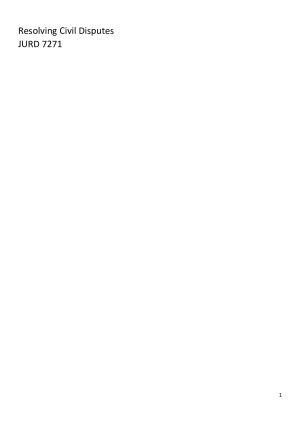 From the first time run in trimesters. Notes cover all topics, very lcer and easy to follow. Topics Covered: Steps in civil litigation Courts and Filing Inherent and Implied Jurisdiction Court structure overview Overriding purpose Directions Cost Types of Costs: Uniform law costs Ordered costs Liability for lawyers: Security for Costs Power: Limitation Periods Interim Injunctions Freezing Orders (Mareva injunctions) Search Orders Offers of Compromise Calderbank Letters Privilege Dominant Purpose Test Loss of Privilege Client Lawyer Privilege – accidental disclosure Pleadings Material Facts Relief is restricted to that available in pleading Non-Compliance with the rules Amendment Powers Surprise Appearance and Defence Striking Out Pleadings Particulars Res Judicata Cause of Action Estoppel Issue Estoppel Anshun Estoppel Joining Plaintiffs Consolidation: Class Actions Cases and test Seven or more persons Claims against the same person Same, similar or related circumstances Substantial common issue of fact or law Class action pleadings Discontinuance and Subgroups Group Definition and the Right to Opt Out Settlement Costs Service of Documents Personal Service Substituted and Inferred Service Wavier Outside the state Discovery DISCOVERY IN THE EQUITY exceptional circumstances necessitating disclosure – Implied Undertaking Subpoenas Lacking Forensic Purpose Witness Preparation Affidavits Requirements Consequences for False Swearing Summary Disposal Default Judgement Setting Aside Default Judgement Summary Judgement Summary Dismissal Want of Prosecution Re-Filing Proceedings