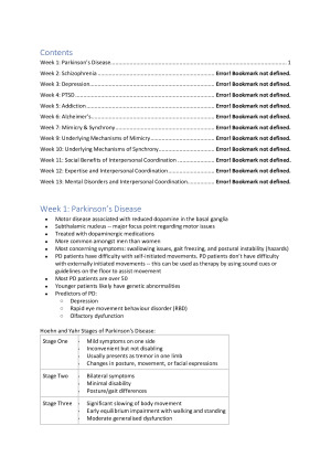 All notes for the ATP lecture for Semester 1 of 2019. These notes cover the following topics (in order): Parkinson's disease Schizophrenia Depression PTSD Addiction Alzheimer's Mimicry & Synchrony Underlying mechanisms of mimicry Underlying mechanisms of syncrhony Social benefits of interpersonal coordination Expertise and interpersonal coordination Mental disorders and interpersonal coordination