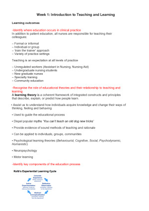Weeks 1-12: -introduction to teaching and learning -planning for learning and teaching -teaching a skill -feedback, assessment and evaluation -workplace learning and clinical teaching -peer assisted learning -reflective practice -health literacy -simulation