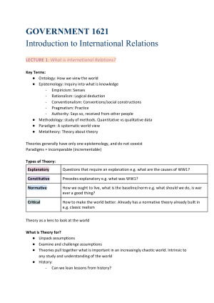 GOVT1621 2020 Semester 1 Detailed Summary Notes