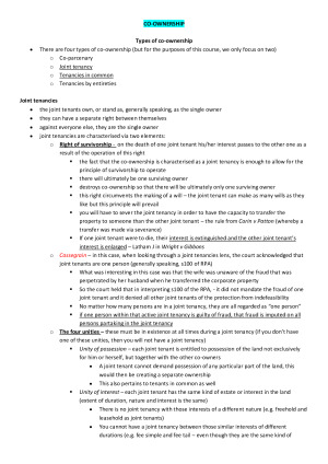 If you don't want to attend/can't make lectures, these notes are all you need! Topics include: 1. The Fundamentals of Land Ownership 2. Torrens 3. Co-ownership 4. Easements and Profits a Prendre 5. Covenants over Freehold Land 6. Leases and Licences 7. Mortgages These are full and comprehensive course notes, I spent hours creating these to make them accessible and easy to understand! They combine the textbook and lecture recordings. If you have these with you during lectures, you will understand the course as you go rather than figuring it all out at the end!