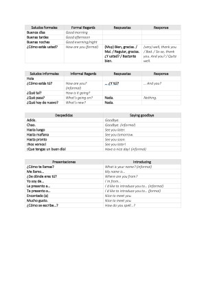 All the vocabularies and grammar taught in SPAN10001 were included. Got an easy H1 with these notes. Topics: - Saludos - Articulos definidos e indefinidos - El salón de clases - Números - Adjectivos - La familia - Los verbos regulares (-ar, -er-, -ir) - La universidad y las materias académicas - El verbo tener - Estación y ropa - El verbo gustar - La fecha - Los lugares en la ciudad - Los verbos irregulares - Las preposiciones de posición - Muebles in casa - Los estados de ánimo