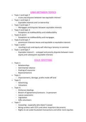 These notes are the absolute perfect combination of lecture notes, LSS tutorials, faculty tutorials, revision seminars and everything in between! The topics included are: Links between topics, issue spotting, resulting trusts, constructive trusts, equities based on estoppel, Joint tenancy, tenancy in common, Terminating co-ownership, rights and duties of co-owners, mortgages, enforceability of property interests, indefeasibility of title, exceptions to indefeasibility, paramount interests, registrar’s power to correct errors, inconsistent legislation, volunteers, compensation, unregistered interests. Property B is a tricky, conceptual topic so make sure you have these notes with you throughout semester to make sense of it all! I took ONLY these exam notes into my exam and was able to get a HD in that exam. The notes are so easy to read and make great use of headings, formatting and colour to ensure that you are able to get the most out of them!