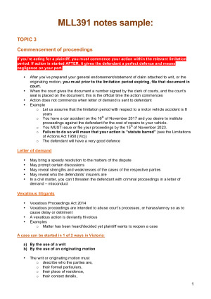 MLL391 CIVIL PROCEDURE NOTES