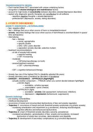 Lecture notes I used to study for the Psychopathology of Everyday Life exam (PSYC30014) and got me that H1!! They are very readable and are arranged with headings, notes from tutorials and tips for the exam as well as tables and helpful pictures. These are based on the weekly lectures and readings, topics include: - Understanding Psychopathology - Anxiety disorders - Mood disorders - eating disorders - psychotic disorders - somatoform and dissociative disorders - personality disorders - trauma and related disorders - addictive disorders - OCD and related disorders