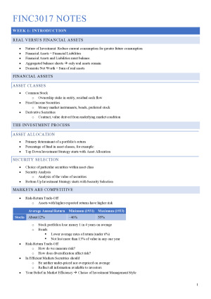 FINC3017 Investments and Portfolio Management Distinction Notes