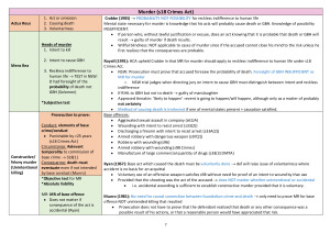 Comprehensive exam notes that are COLOUR CODED, DETAILED and EASY TO FOLLOW. This is a PROBLEM QUESTION MATRIX with step by step instructions on actus reas and mens rea that will guide you through the exam. Topics: 1. Assault 2. Homicide 3. Defences 4. Dishonest Acquisition 5. Extending Criminal Liability