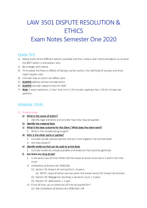 These notes are extremely comprehensive and with them, I was able to achieve a distinction in the final examination. They are clear, well-formatted and easy to follow and will provide you with a more in-depth understanding of the topic. These notes cover the new UCCR rules which were introduced in 2020. Topics covered: Jurisdiction ADR Pre-Action Protocols Pleadings Additional Parties Discovery Privilege and Immunity Investigatory Processes Interlocutory Applications and Maintaining the Status Quo Costs Judgement, Appeals and Judicial Review Mediation and Negotiation Cross Vesting
