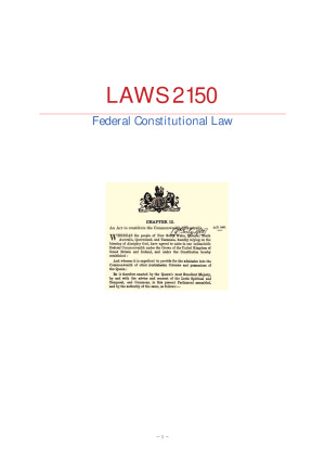 LAWS 2150 Federal Constitutional Law – 1 – Contents Contents 2 Class 1A: The Constitution 6 Recent Developments in Federal Constitution Law 6 Covering Clauses 6 Chapter I: The Parliament 7 Part I: General 7 Part II: The Senate 7 Part III: The House of Representatives 8 Part IV: Both Houses of the Parliament 8 Part V: Powers of the Parliament 9 Chapter II: The Executive Government 11 Chapter III: The Judicature 11 Chapter IV: Finance and Trade 12 Finances of the Commonwealth 12 Customs and Exercise Duties 13 Commonwealth Finances and the States 13 The Inter-State Commission 13 State Debts 14 Chapter V: The States 14 States’ Legal Systems 14 Prohibitions, Rights and Duties 14 Chapter VI: New States 15 Chapter VII: Miscellaneous 15 Class 1B: Constitutional Interpretation (I) 17 Pre-Engineers Case (p 242) 17 Implied Immunity of Instrumentalities (p 243) 17 Reserved State Powers (p 248) 18 Engineers’ Case and End of Implied Immunity and Reserve State Power 19 The Jumbunna Principle (p 182) 20 Class 2A: Constitutional Interpretation (II) 21 Literalism, Legalism and Judicial Choice (p 170) 21 The Dead Hand and the Living Tree (p 186) 23 Use of Historical Materials (p 186) 23 Originalism: Intention of the Framers (p 186) 24 Textualism (p 192) 24 Incremental Accommodation (p 196) 25 Purposive Interpretation: Constitution as a Living Tree (p 199) 26 Strategic Compromise (p 207) 28 Class 2B: Characterisation 30 Characterisation (p 760) 30 Dual Characterisation (p 764) 30 Interaction between Heads of Power (p 773) 32 – 2 – Subject Matter and Purpose Powers (p 778) 33 Subject Matter Powers (p 779) 33 Sufficient Connection (p 779) 33 Role of Purpose (p 785) 34 Incidental Powers (p 786) 35 Purpose Powers and Proportionality (p 788) 35 Purpose Powers (p 788) 35 Extending the Purpose Test beyond Purpose Powers (p 790) 36 Proportionality and Constitutional Limitations (p 799) 37 Class 3A: Other Fundamentals 39 Precedent and Overruling Constitutional Cases (p 480) 39 UK Position 39 HCA Position 39 Reading Down and Severance (p 473) 41 Classes 3B–4A: External Affairs 44 Relations with Other Countries (p 896) 44 Matters External to Australia (p 898) 44 International Law Other than Treaties (p 902) 45 Implementing Treaties (p 903) 45 Entering into Treaties (p 903) 45 First Approaches to Treaties and s 51(xxix) 46 The Expanding Power (p 908) 46 Confirmation of the Expanding External Affairs Power (p 919) 48 International Recommendations (p 926) 48 Classes 5A–5B: Economic Powers 50 Trade and Commerce Power (p 802) 50 Scope of the Trade and Commerce Power (p 802) 50 Incidental Powers Relating to Trade and Commerce (p 806) 51 Corporations Power 52 Development of the Corporations Power (p 815) 52 1. Constitutional Corporations (p 818) 52 2. Activities Covered by s 51(xx) (p 828) 54 Classes 6A–6B: Races Power 57 History of the Races Power (p 986) 57 Commonwealth Power with Respect to Aboriginal People (p 987) 57 Special Laws Deemed Necessary for People of Any Race (p 989) 57 For the Benefit of a Race (p 997) 58 Constitutional Recognition of Indigenous People 60 Class 8B(1): Taxation Power 62 Procedure for Passing Tax Bills (p 1010) 62 Meaning of ‘Tax’ (p 1011) 62 Fee for Services (p 1018) 64 Class 8B(2): Grants Power 65 The Early Cases (p 1067) 65 – 3 – The Uniform Tax Cases (p 1069) 65 First Uniform Tax Case 65 Second Uniform Tax Case 65 Limits on the Grants Power (p 1077) 66 Class 9A: Inconsistency of Laws 68 ‘Invalid’ and ‘Prevail’ (p 297) 68 Tests of Inconsistency (p 298) 68 Direct Inconsistencies (Categories 1–2) 68 Indirect Inconsistencies (Category 3) 69 Applying the Categories of Inconsistency 69 Operational Inconsistency (p 309) 70 Manufacturing Inconsistency and Consistency (p 310) 70 Manufacturing Inconsistency (p 311) 71 Manufacturing Consistency (p 321) 72 Provision That Federal Law Does Not Limit Concurrent State Law 72 Rollback Provision (p 322) 72 Class 9B: The Commonwealth and the States 74 The Melbourne Corporation Principle (p 1084) 74 Melbourne Corporation (1947) CLR 74 Victoria v Commonwealth (1971) CLR (‘Payroll Tax Case’) 74 Restatement I: Two Principles 74 Restatement II: One Principle 76 Classes 10A–10B: Freedom of Interstate Trade and Commerce 78 Background to the Freedom of Interstate Trade and Commerce (p 1195) 78 The Bank Nationalisation Case (p 1198) 78 Cole v Whitfield (1988) CLR (The Court) 79 Freedom of Interstate Intercourse 79 Freedom of Interstate Trade and Commerce 79 Developments since Cole v Whitfield 79 Class 11A: Express Guarantees 82 Trial by Jury (p 1156) 82 Freedom of Religion (p 1173) 83 Laws for Prohibiting Free Exercise of Religion 83 Laws for Establishing Any Religion 84 Religious Qualification for Office under the Commonwealth 84 Classes 11B–12A: Implied Freedom of Political Communication 85 Origins of the Implied Freedom of Political Communication 85 Developments since Australian Capital Television 86 Confirming the Implied Freedom: Lange v ABC (1997) CLR 87 Protest and the Implied Freedom 88 Lange’s Two Questions 88 Effective Burden on Government/Political Communication 89 Legitimate Ends and Proportionate Means 89 Classes 12B–13A: Judicial and Non-Judicial Detention 91 – 4 – Non-Judicial Detention at the Commonwealth Level (p 541) 91 Non-Judicial Detention at the State Level: The Incompatibility Doctrine 91 Kable v Director of Public Prosecutions (NSW) (1996) CLR 91 Nature of Judicial Orders: NSW v Kable (2013) CLR 92 Preventive Detention (p 574) 92 Protective Detention (p 554) 93 Immigration Detention (p 557) 94 The Al-Kateb Trilogy 94 Chu Kheng Lim vs Al-Kateb 94 Control Orders (p 589) 96 Federal Anti-Terrorism Legislation 96 State Anti-Bikie Legislation 97 Extension: Defence Power 98 Nature and Scope of the Defence Power (p 845) 98 War (p 847) 99 Post-War (p 854) 100 Peace (p 856) 100 Defence Power during the Cold War (p 863) 100 Terrorism and National Security (p 876) 102