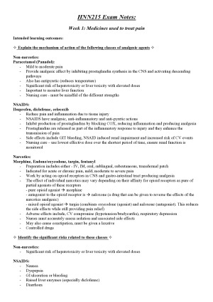 These are a great resource to have while studying for exams. Each intended learning outcome for all weeks are answered in detail with drug examples included. Really helpful to use. - Medicines used to treat pain - Anti-infective medications and antimicrobial resistance - Cardiac medications “Conduction and Contractility” - Cardiac medications 2 “Blood vessels and Coagulation” - Medications affecting respiratory function - Gastro-oesophageal reflux disease (GORD) and diabetic medicines - Medications affecting gastrointestinal function