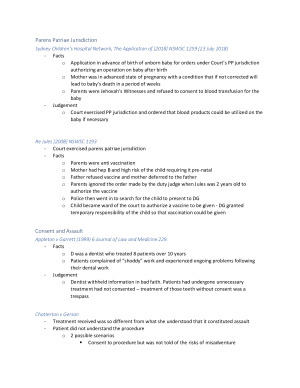Topics - Module 2 Consent to Medical Treatment - Module 3 Professional Liability - Module 4 Reproduction - Module 5 Withdrawal of Treatment, End of Life Decision Making and Assisted Dying Includes - class notes, readings, case summaries and legislation