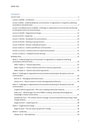 Detailed complete course notes organised by week. I have made these detailed notes using ALL assessable content for the course - lecture slides, lecturer comments and examples, guest lectures for 'Reality Check Challenges' and readings. ALL the important information for WORK3205 to help you get a great mark for tutorial participation and the final exam! Topics in my notes are according to the week they were taught This subject does not have required readings, only recommended/suggested readings. I have made notes on most of these readings. The full list of readings and topics can be found in the preview/sample notes.