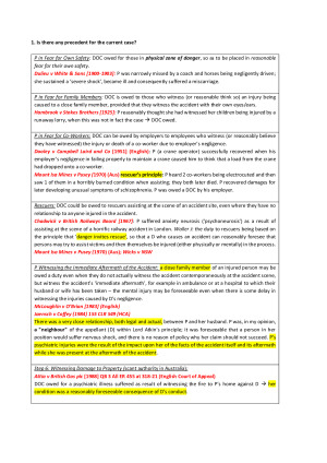 These are comprehensive, color coded notes for all 13 weeks of content. All cases (including detailed summaries) and statutes learnt are included. It is a helpful summary of all readings set for the course. There is a step by step structure for how to answer a problem question in almost every week's topic, which was extemely helpful when I did my exam and allowed me to get 90%. Kitt Barker's own comments from seminars have been included for many topics as well (super useful for an essay question)! Topics include: Psychiatric harm, Economic Loss I (policy concerns and new cases), II (relational economic loss), III (negligent mistatement), IV (defective premises), Defamation, Defamation defences, Invasion of privacy, VIcarious liability, Tort compensation schemes. Important takeaway from the cases & ratio decidendi all highlighted. The structure of the notes is set out very clearly and I have received feedback that the notes are very helpful for exam preparation! In the sample notes, a sneak peek of the notes for Psychiatric harm, Economic loss IV, Defamation, Invasion of privacy, Vicarious liability and Tort compensation schemes have been included. Note that these topics have been majorly shortened to just provide you with an idea of the structure.