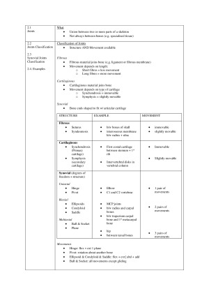 - Based on specific learning outcomes and assessable outcomes for mid semester exam and final exam - Includes ALL 10 Weeks worth of content AND pre-semester lectures - Combines lecture content and practical content - Format inspired by Cornell method of note taking - Grade Received: DISTINCTION INCLUDES: - Introductory Anatomy & Osteology - Introductory Arthrology & Myology - Bones, Joints & Muscles of the: Shoulder Elbow & Forearm Wrist & Hand Hip & Pelvis Knee & Leg Ankle & Foot - Skull, Vertebral Column & Trunk