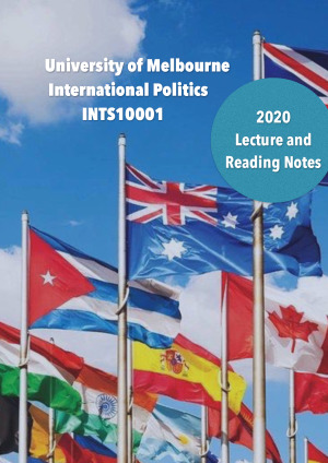 This document includes lecture notes and some reading notes for all of the following topics: 1A Introduction and Early to Modern International Systems 1B From Westphalia to Modern International Relations 2A The Rise and Fall of Empires 2B The Cold War and its End 3A A new World Order? Politics after 1989 3B From International to World Society 4A Realisms 4B Liberalisms 5A Constructivism 5B Norms and Ethics in International Relations 6A Classy theory: Marxism and Critical Theory 6B Gender and Postcolonial perspectives 7A International Law and International Relations 7B Human Rights and Humanitarian Intervention 8A The United Nations 8B International Governance: Governing world society 9A States, markets, capital, labour: Governing the global economy 9B Economic Development: Development for whom? 10A Hot topics: Global Climate Change 10B International Migration 11A The changing nature of warfare: beyond inter-state war 11B Still worrying: Nuclear weapons and international anarchy 12A Putting it all together: IR and COVID-19 12B Conclusion and the future of International Relations