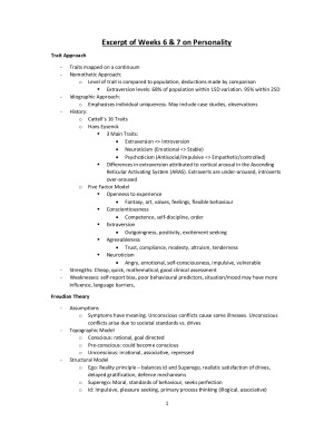 My summary covers the regular psychology lectures (not the research design lectures). I am a student who performs academically within the top 1% of their cohort, and I have a WAM of 89. These notes highlight the important topics which you will need to remember for your exams. This summary covers: Weeks 1 & 2: History of Psychology Week 2: Motivation Week 3: Appetite Weeks 3, 4, & 5: Learning Weeks 6 & 7: Personality Week 8: Social Motivation Weeks 9 & 10: Psychopathology Weeks 11 & 12: Biological Basis