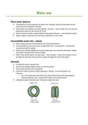 These notes include hand-drawn images and information about the following content; Growth Analysis • Growth • Plant Development • What is a meristem? • Types of meristems • Measuring plant growth • Phases of plant growth • Factors affecting plant growth and development • Growth rate • Relative Growth Rate • Examples of relative growth rate • Absolute growth rate • Absolute vs Relative growth rate • Driving variables for relative growth rate • Leaf area index • Factors influencing relative growth rate Water use • Plant water balance • Unavoidable water loss – plants • Stomata • Leaf surface structure • Adaptations to life on land – plants • Water potential • Water movement in plants • Osmosis in plant cells • Water potential components • Matric potential • Hydrostatic Pressure • Gravitational potential • Water relations of plant tissue Xylem Transport • Soil-plant-atmosphere continuum (SPAC) • Water in soils • Soil hydraulic conductivity • Apoplast root water uptake • Cell-to-cell movement root water uptake • Aquaporins • Regulation of aquaporins • Xylem pathway • Xylem Tracheid • Xylem Vessel • Xylem water flow – poiseuille’s law • Cavitation (embolism) in xylem • Water pathway leaf-atmosphere Stomatal control of transpiration • Transpiration rate equation • Water vapour concentration • Boundary layer resistance • Stomata • Stomatal opening • Stomatal closure • Stomatal physiology Plant nutrition • What is an essential nutrient? • Macro vs micronutrients • Primary and secondary deficiencies • Functional groups of nutrients • N2 fixation • Critical concentrations • Nutrient availability • Nutrient deficiency • Chlorosis • Examples of nutrient deficiency • symptoms • Mobile nutrients • Immobile nutrients • Bray’s mobility concept • Nutrient toxicities • Interpreting plant symptoms Nutrient uptake by roots • Nutrient Uptake by roots • Nutrient mobility • Forms of potassium in soils • Movement of nutrients in soil • Mass flow • Diffusion • Root interception • Nutrient depletion by roots • Root systems • Movement of solutes into roots • Biomass allocation to roots • Root architecture • Maximising nutrient uptake • Root hairs • Cluster roots (Proteoid roots) • Soil factors effect on root shape • The Rhizosphere • Nitrogen fixation • Formation of N2 fixing nodules • Chelating agents • Active uptake of solutes via roots • Transport proteins • Soil colloid and nutrient exchange Plant resource partitioning • Resource capture • Biomass allocation • Factors affecting biomass allocation – environment • Biomass allocation - Variation between species • Source-sink model • Source-sink model – nutrient examples • Preferential sinks • Growth of cereals – source and sinks • Source and Sink feedback mechanism examples • Carbon partitioning: Harvest index (HI) • Plant response to nutrient shortage Plant development • Plant Development • Development and phenology • Phenostages and phenophases • Why is phenology important? • Zadoks’ scale for cereals • Canola phenology • Aligning canola phenology with environment • Responses of development to environmental factors • Measuring plant development • Thermal time – TT • Developmental switches • Photoperiodic response • Vernalisation • Basic development rate • Maturity types • Dual-purpose wheat • Crop improvement Photosynthesis • Overview of Photosynthesis • Photosynthetic pigments • Chloroplasts • Photosystem 1 and 2 overview • Difference between PSI and PSII • Emerson effect • Z scheme • Cyclic electron flow and the light reaction • Linear Electron Flow and the light reaction • Group C herbicides • Group L herbicides • Chemiosmotic theory • Calvin Cycle • Calvin cycle 3 phases • Rubisco • Rubisco in C3 plants • Photorespiration • C4 Photosynthesis • What are the advantages of C4? • CAM photosynthesis pathway • Conditions for C4 advantage Hormones • Intro to hormones • Role of plant hormones • Classes of plant hormones • Overview of the plant hormones • Concentration of hormones • Antagonism • Plant hormone cross-talk Auxin • Discovery of Auxin • Auxin • Auxin role • Phototropism • Acid growth hypothesis • Auxin transport through the cell • Auxin Herbicides • Auxin secondary growth effects • Major effects of auxins on plant biology Gibberellins • Gibberellins discovery • Effect of gibberellins on dwarf plants • Gibberellins in seeds • Gibberellins and fruit setting • Gibberellin and Abscisic acid • Major effects of Gibberellins on plant biology Cytokinins • Cytokinins discovery • Cytokinins overview • Cytokinins and Auxins • Direct inhibition hypothesis – Apical dominance • Role of Cytokinins • Major effects of Cytokinins on plant biology Abscisic acid • Abscisic Acid discovery • Effects of Abscisic acid • Water stress and ABA • Major effects of Abscisic acid on plant biology Ethylene • Ethylene discovery/overview • Triple response – ethylene • Abscission of leaves • Fruit ripening • Apoptosis – ethylene • Major effects of ethylene on plant biology Brassinosteroids • Brassinosteroids discovery/overview • Role of Brassinosteroids Plant stress – water deficit • Evaporation or transpiration contribution • Pan evaporation method • Changes to Kc • Water deficit significance for plant life • Degree of drought stress • Responses to water deficit • Effects of water deficit • Plant adaptations to water deficit • Plant adaptations Plants and salinity • Salinity • Dryland salinity • Irrigation salinity • Plant responses to salinity • Osmotic and Ionic Stress • Water deficit and ion excess • Halophytes – how they manage salinity • Root anatomy and salt tolerance • S