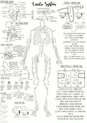 Full anatomical diagrams with explanations for Nervous system, Skeletal, Respiratory, Cardiac and Muscular system, integrating physiology and anatomy. Detailed labelled drawings of concepts. Each page can be stacked on top of one another (I printed mine on transparent paper at Officeworks) to display the anatomical relations between different body systems. I also used it as a passive study method by using it as a colouring sheet. I got a H1 in HSF in Semester 2 2020 and made/used these as revision after each topic.