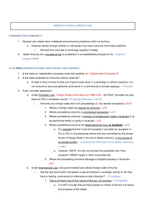 This is all you need for both the midsemester and final assessment. The concise scaffold format allows easy step-by-step application to any problem question. All topics from all weeks are covered, including: (1) The nature, function and scope of public international law; (2) The sources of public international law, including treaty law; (3) The relationship between international law and domestic/national law; (4) The extent of state jurisdiction, and immunities from jurisdiction; (5) The law of state responsibility, including related areas of the treatment of aliens, diplomatic protection, and nationality of claims; (6) The peaceful settlement of disputes; and (7) The law on the use of force. Textbook used (I have also listed this textbook for sale): Martin Dixon, Robert McCorquodale, Sarah Williams Cases and Materials on International Law (Oxford University Press, 6th ed., 2016)