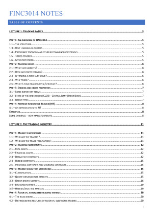 FINC3014 Trading and Dealing in Security Markets HD Notes