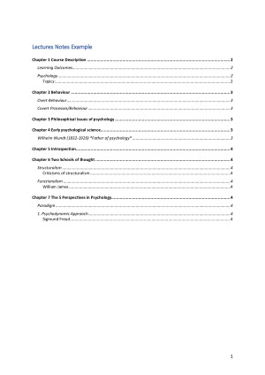 Complete Notes of all lectures in 1001PSY. Set out in topics, each with a contents page. Includes the following topics: - Types of beahviours, Philosophical Issues of Psychology, Structuralism and Functionalism, The 5 Perspectives in Psychology, Biological Bases of Human thought and behaviour - Nervous System, Consciousness, Circadian Rhythms, Sleep Disorders, Mind-altering drugs - Memory, Modal Model of Memory, "Seven Sins of Memory", Forgetting - Sensation & Perception, Difference Thresholds, Vision, Gestalt Laws of Perceptual Organisation, Disorders - Learning and Thinking, Operant Conditioning, Reasoning, Problem Solving, Bounded Rationality