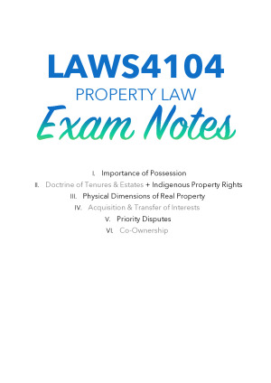 I. Importance of Possession II. Doctrine of Tenures & Estates + Indigenous Property Rights III. Physical Dimensions of Real Property IV. Acquisition & Transfer of Interests V. Priority Disputes VI. Co-Ownership