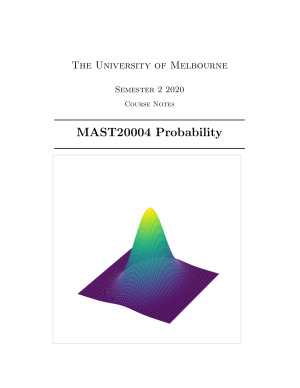 Take a look through the beautifully typeset and detailed pages in the preview! The entire course is covered and in great detail. I achieved a very high H1 (95 First Class Honours) in the subject. **Includes an A4 Exam Cheatsheet at the back.** Includes all distributions, with explanations, graphs, properties and warnings! Comprehensive course notes that I created that summarise the *entire* course content and include many useful warnings and tips included! Summarises all lectures and textbook material. Perfect for those who are looking to have a compact REFERENCE to assist during the semester. Probability is a challenging and theoretical subject, so practice regularly and keep up to date! Outline of topics 1. Axioms of Probability 2. Conditional Probability 3. Random Variables 4. Discrete Distributions 5. Continuous Distributions 6. Bivariate Random Variables 7. Generating Functions 8. Limit Theorems 9. Stochastic Processes