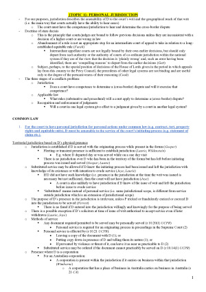 This is a comprehensive yet concise set of scaffolds and notes which will allow you to excel in LAWS2018. It covers in detail the entire course and all the weeks, including: - personal jurisdiction - choice of law - recognition and enforcement of foreign judgments I completed the unit with a D mark of 81 and used only this set of notes.
