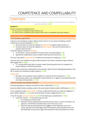 Comprehensive, well-structured notes with everything you need to know for Evidence. Colour coordinated to allow for easy cross-referencing between topics. Includes all lecture slides and notes, with case summaries for key cases. All topics covered in the course are included: - Leave, Permission and Directions - Relevance - Competence and Compellability - Privilege - Examination of Witnesses - Character and Credibility - Right to Silence - Tendency and Coincidence - Hearsay - Admissions - Illegally Obtained Evidence - Opinion Evidence
