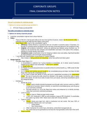 Includes coverage of all topics Corporate Groups: Contact for tutorials Tax policy principles for corporate groups 1. Options for taxing corporate groups Formation and termination of consolidated groups 2. Qualification and election 3. Tax cost setting rules 4. Exit Operating as a consolidated group 5. Single entity rule 6. Losses 7. TOFA, bad debts, loss of integrity, value shifting 8. PAYG, imputation and liability for tax and compliance International operation of consolidation 9. International issues 10. MEC groups Reorganization of consolidated groups and anti-avoidance 11. Reorganisation of consolidated groups 12. Operation of the general anti-avoidance rule in consolidation