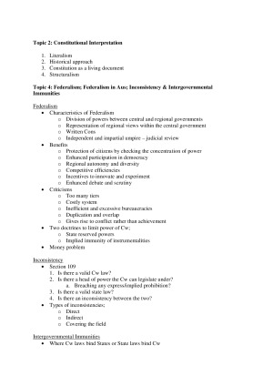 Quick reference guide including topics; - Fundamental principles - Interpretation - Federalism - Inconsistency - Intergovernmental Immunities - Institutions - Elections/ voting - Federal executive - Federal Judiciary - Legislative Power - External Affairs Power - Defence Power - Corporations Power - Trade and Commerce Power - Taxation Power - Excise Duties - Appropriations - Grants - Interstate Trade Commerce - Race Power - Rights Protection - Trial by Jury - Religion and Discrimination - Implied Freedom of Political Speech