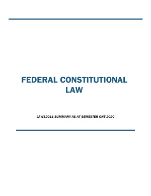 Exam Notes I used to get 83 in FedCon last year (2020). These are mainly scaffolds. Each topic (that is examinable in the Final Exam) has a set of scaffolds and an example skeletal answer. I found this helpful during the exam since this prewriting saved a lot of time :) List of Topics: 3 – EXTERNAL AFFAIRS POWERS 3 WHERE THERE IS A TREATY 3 IN THE ABSENCE OF A TREATY 4 4 – CORPORATIONS 8 5 – FREEDOM OF INTERSTATE TRADE 11 6 – TAXATION 14 7 – GRANTS 18 BACKGROUND 18 GENERAL USE OF GRANTS POWER 18 RELATIONSHIP BETWEEN SECTION 96 AND HEADS OF POWER 18 RELATIONSHIP BETWEEN SECTION 96 AND CONSTITUTIONAL PROHIBITIONS 19 8 – DEFENCE 22 SCOPE OF DEFENCE POWER 22 APPLICATION – TWO STEPS 22 COMMUNIST PARTY DOCTRINE 23 9 – IMPLIED RIGHT OF POLITICAL FREEDOM 25
