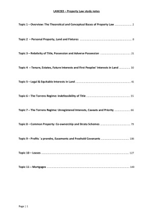 Topic 1 – Overview: The Theoretical and Conceptual Bases of Property Law Topic 2 – Personal Property, Land and Fixtures Topic 3 – Relativity of Title, Possession and Adverse Possession Topic 4 – Tenure, Estates, Future Interests and First Peoples’ Interests in Land Topic 5 – Legal & Equitable Interests in Land Topic 6 – The Torrens Regime: Indefeasibility of Title Topic 7 – The Torrens Regime: Unregistered Interests, Caveats and Priority Topic 8 – Common Property: Co-ownership and Strata Schemes Topic 9 – Profits `a prendre, Easements and Freehold Covenants Topic 10 – Leases Topic 11 – Mortgages