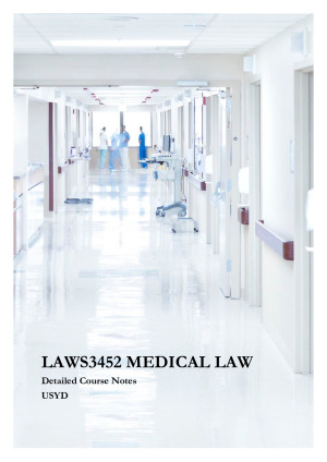 These extremely detailed notes cover the Medical Law course. They helped me receive a High Distinction They include citation of authority, statutory provisions, pinpoint case references, and page references for academic scholarship. The notes also include scaffolds for problem questions. They are a summary of two medical law textbooks, lecture notes, seminar notes, and the full cases in the Unit Outline. I also colour-coded the notes to make it easier to memorise and locate legal principles: statutory provisions in blue, cases in aqua, contentious issues are in orange, definitions in pink, problematic/unsettled areas of law in red. All topics covered: 1. Fundamental statutory rules 2A. Consent - for children (disabled and non-disabled) 2B. Consent - for adults 3. Professional Liability - for doctors, medical clinics, and hospitals 4. Reproduction 5. Withdrawal of Treatment, End of Life Decision-Making and Assisted Dying