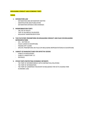 Misleading and Economic Torts - Comprehensive exam guide with authorities