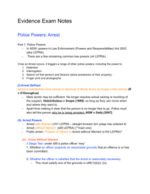 In these notes, you will find comprehensive information on each weeks topic throughout the semester: 1. Police Powers: Arrest 2. Offences 3. Bail 4. Relevance of Evidence 5. Privilege 6. Witnesses 7. Credibility 8. Documentary and Real Evidence 9. Hearsay 10. Admissions 11. Opinion Evidence 12. Tendency and Coincidence 13. Character Evidence Please see sample for a preview of the notes.