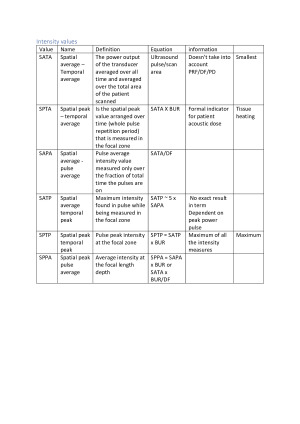 End of semester questions for key concepts - artefacts, intensity values, Doppler Imaging, Image quality, Thermal and Mechanical Index
