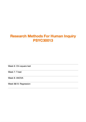Hi, this note helped me to achieve an 97 in the assignment and 92 overall, hope you find it helpful! This note covers all of the significance tests from week 6-10: It gives you examples of: 1. how to answer stats questions 2. what test to chose based on the question 3. how to present your statistics (ex. p-value) and interpret them 4. what assumptions you have to make and how to check The most difficult part of this subject is answering short answers instead of coding. It requires you to have a deep understanding of statistics and the ability to flexibly apply your knowledge to some very 'random' questions. Good luck ;)