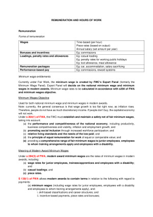 Comprehensive notes covering material from lectures, compulsory readings and the textbook 'Labour Law'. Topics covered: - Remuneration and hours of work - Leave - Performance and control - Enforcement and employment obligations - General protections under Fair Work Act - Termination of employment - Dismissal under Fair Work Act
