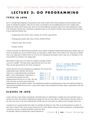 I am a computer science and neuroscience major in a Bachelor of IT/Bachelor of Science (Advanced) course at the University of Sydney. These notes enabled me to achieve a score of 85 in SOFT2201 Software Construction and Design I. They cover topics of: OO Programming, Software Modelling Case Studies, Software Design Principles, Introduction To Design Patterns, Behavioural Design Patterns, Testing, Adaptor and Observer Patterns, Memento and Prototype, Code Reviews, API Design and, Singleton, Decorator, Facade.