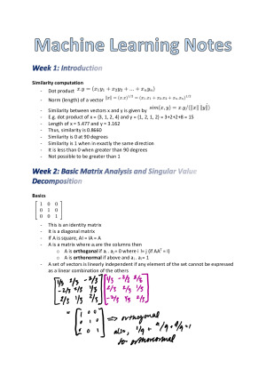 I am a computer science and neuroscience major in a Bachelor of IT/Bachelor of Science (Advanced) course at the University of Sydney. These notes enabled me to achieve a score of 83 in Machine Learning and Data Mining. These notes cover the following topics: Introduction, Basic Matrix Analysis and Singular Value Decomposition, Basics of Probability Theory and Bayes’ Rule, Basics of Classification and ROC Curves, Linear Regression-Overfitting, Logistic Regression, Support Vector Machines, Multiclass Classification, Clustering, Large Scale Machine Learning and Deep Learning.