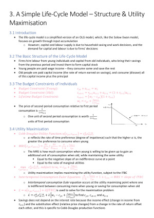 A COMPLETE set of H1 notes on: - Production function & growth accounting - A simple life-cycle model - Firms' profit maximisation & equilibrium - The economy's growth path - Introduction to new growth theory - Business cycle - Economic fluctuations in the life-cycle model - Fiscal policy - Effects of government capital formation - Effects of social security - Money and monetary policy - Inflation - Exchange rates and balance of payments - Financial intermediation Key formulas for the subject are ALWAYS included and are highlighted throughout