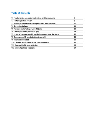 These notes got me an HD (91) for the unit! Comprehensive, detailed and perfect to use for both the assignment and the final exam - structured on a step-by-step basis so that all relevant issues are quickly and easily identified and discussed. Many pre-written parts used as a template and can simply be copied in the final exam to save time. Includes facts and principles from cases, covers information from all lectures, tutorials, LSS tutorials and readings!