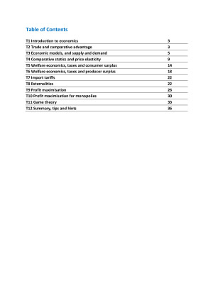 These notes got me an HD (88) for the unit! Comprehensive, detailed and perfect to use for assignments and the final exam. Topics: - Introduction to economics - Trade and comparative advantage - Economic models; supply and demand - Comparative statics and price elasticity - Welfare economics, taxes, consumer surplus and producer surplus - Import tariffs - Externalities - Profit maximisation - Profit maximisation for monopolies - Game theory - Summary, tips and hints